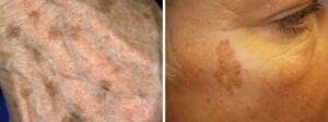Age spots, which are sometimes called liver spots or solar lentigines, are flat spots that can be brown, gray, or black. They usually show up on parts of the skin that have been exposed to the sun.